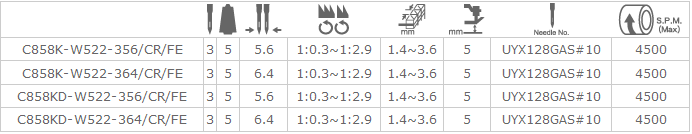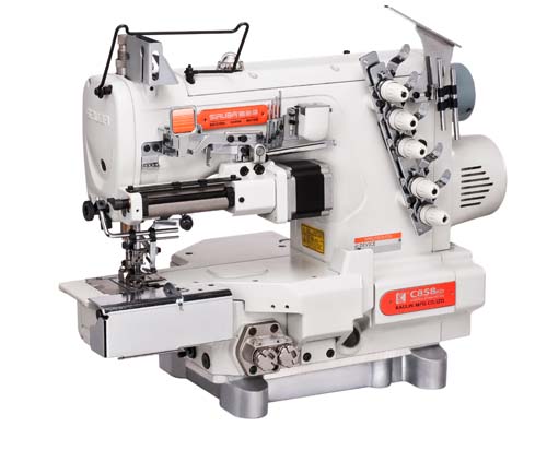 經由電子控制箱之數位設定,能有效控制松緊帶的長度與松緊度,可正確且平均的進行松緊帶車縫,加附右切刀修布及氣動吸布屑裝置能于車縫前將布修齊,可增加縫製品質,如女用內衣褲之松緊帶或蕾絲松緊帶車縫