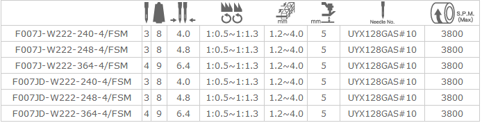 適用于T恤、襯衫等領口、下擺、袖口等花飾滾邊車縫,附有四組花飾凸輪可變化成數百種車縫花樣