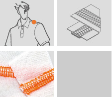 適宜中厚至厚布料經四線拷克車縫后再包縫,用于運動服、休閒服等包飾縫,在針板前端有導引器能把直縫的針跡,均勻分開增加車縫的美觀