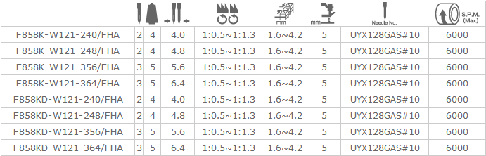 本機型為雙面飾薄布用環縫平車之基本機型,可裝配附件進行多種功能車縫 例如: 內衣褲、運動衫接縫及下擺車縫(附簡易可調式下擺車縫組)