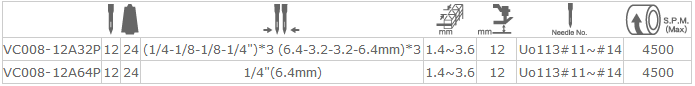 一般平縫(12針配13針規格配6組針&勾針) 完全自動給油,勾針縱向運動機構,筒型車臺,利于圓筒型衣物之縫紉,12針配13針規格讓針距更多變化,適用于一般高級衣物之裝飾車縫