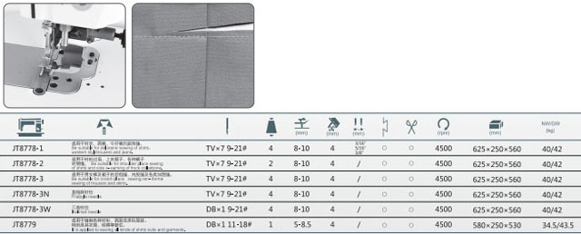 適用于縫制各種襯衫,西服或類似服裝,特別是其衣領、前襟等部位。送料機構獨特,使高速縫制時的倒順送料針距能保持完全一致。側切刀裝置使縫紉和修刀工序一次完成,工作效率提高。并有多種規格針板以供選擇。