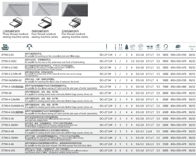 JT799超高速包縫機系列產(chǎn)品,采用國際最先進的技術、最新的設計、造型美觀大方。它應用于針織服裝、內(nèi)衣、鞋、T恤衫、絲綢、化纖的包縫,包邊等多種縫紉性能,是一種物美價廉的高檔縫紉設備。
