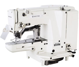 平縫筒型套結(jié)機具有加固縫,還可用于形狀縫,圖案縫等用途,本機安裝有“針數(shù)變換機構(gòu)”,為此可迅速應付多種用途,有時1臺機器可當作3臺的用,是一臺小巧的省力機器。