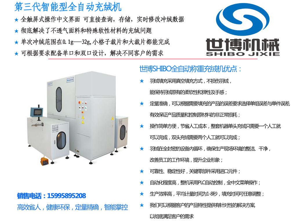 世博全自動智能稱量充絨機,羽絨制品廠家必備利器!
