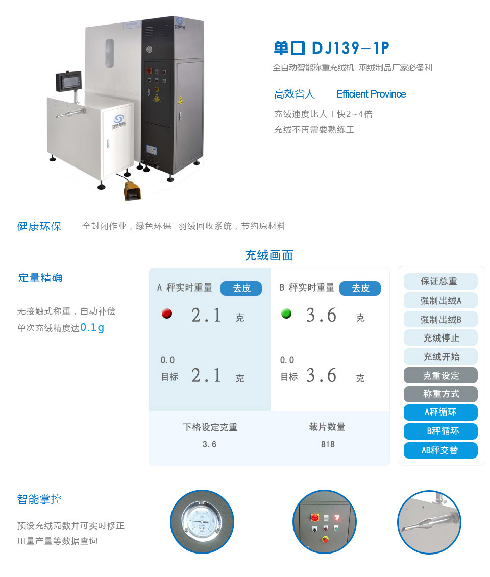 世博全自動稱重充絨機,電腦充絨機DJ139-1P