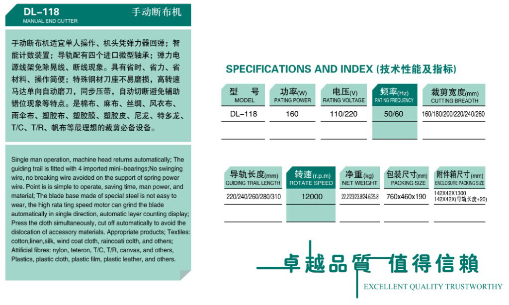 “好大力”牌 DL-118 斷布機(圓刀機)