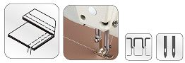 本機具有雙針離合式針桿結構,使縫紉拐角、銳角、直縫時準確方便,針桿與送布牙同步送料,可防止縫料滑移,線跡美觀、整齊,適用于女內衣、牛仔衣褲、男女大衣的轉角縫紉和裝飾縫紉。