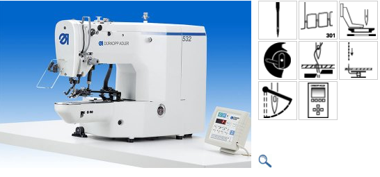Attaching buttons with 2, 3, 4 or 6 holes and button size of 7 to 40 mm max.