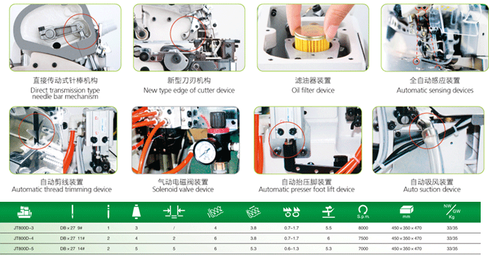 可以廣泛支持從薄料到厚料的縫紉,是一臺具有卓越的性價比的電腦包縫機;通過電腦智能控制,可自動縫紉、自動剪線、自動抬壓腳,自動吸風等功能;配備了電腦直驅伺服馬達,實現了機器的快速啟動有制動的精確性,降低了能耗,與普通的驅動裝置相比,電量消耗消減60%以上。通過特殊表面加工處理,實現了零部件的長期使用。為了能夠縫制特殊加工的高功能纖維,對針板、壓腳托架等進行了特殊表面加工,可以長期使用零部件。由此也有助于降低伴隨維修而出現的成本。