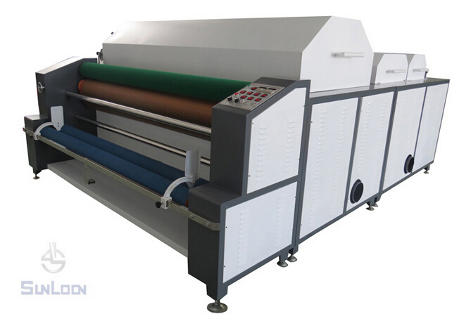 1、蒸汽預縮布料自動恒溫烘干區,真空抽吸冷卻搖擺折疊布匹。