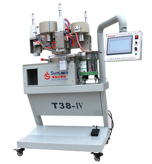 4、配合震動盤輸送四爪釘,使釘及珠飾在高速震動下順暢完成釘珠鉚合,大大提高了生產速度。