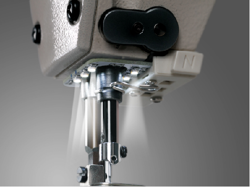 進(jìn)一步升級(jí)的LED燈,環(huán)繞在針桿與壓腳桿周圍,在保留了原有高性能的基礎(chǔ)上,照明角度更合理,范圍更大。