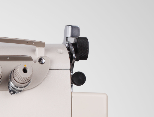 機頭部位設計了上送布牙差動調整搖桿,可方便進行送布牙的前后送布量,同時設計了上下調整螺絲,亦能方便的對送布牙進行上下調整,在更換面料時,易用性大大增加。
