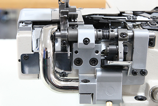 基于對服裝生產過程的深刻理解,HW782T左切刀采用電動撥線器裝置設計,克服了傳統氣動撥線器夾線率低的現象,使夾線率提升至100%,從而更加提高了縫制的效率。