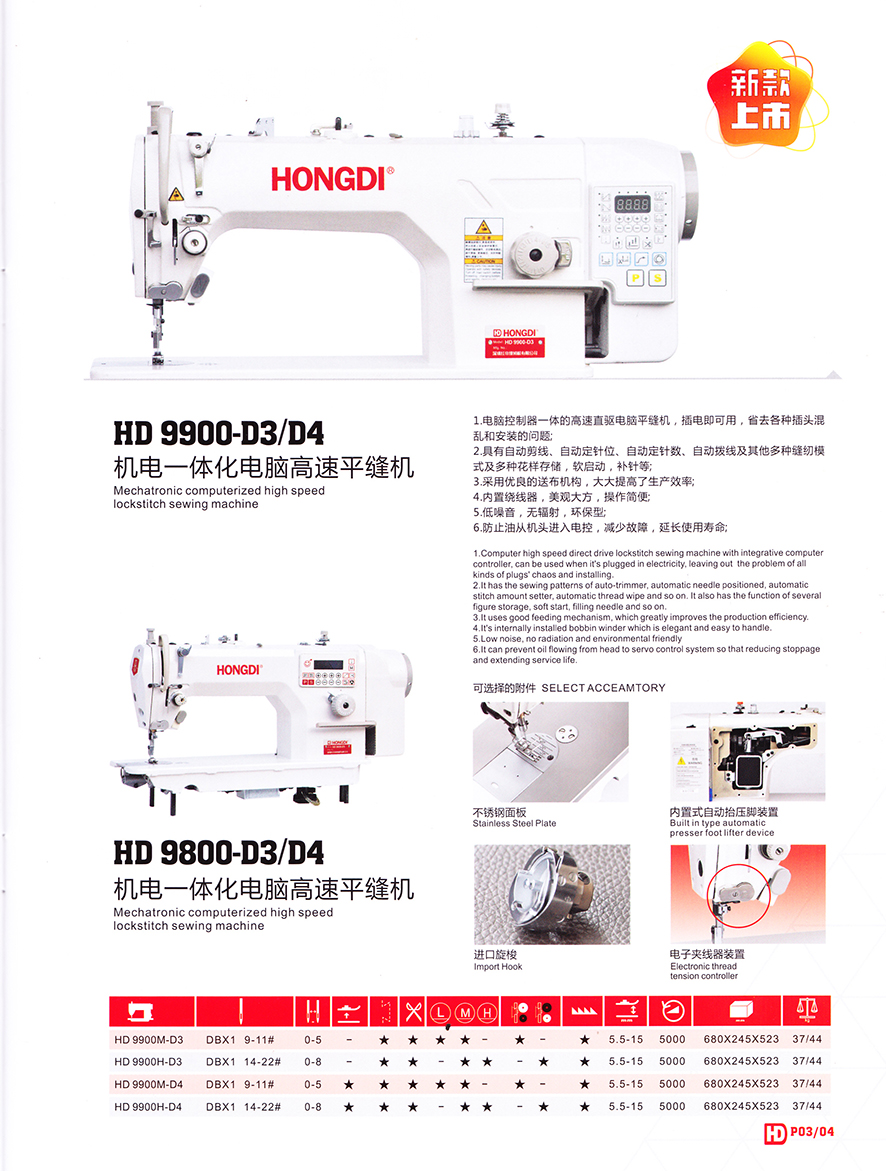 HD-9800-D3/D4機(jī)電一體化電腦高速平縫機(jī)