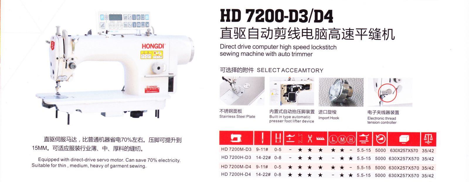 HD-7200-D3/D4直驅自動剪線電腦高速平縫機