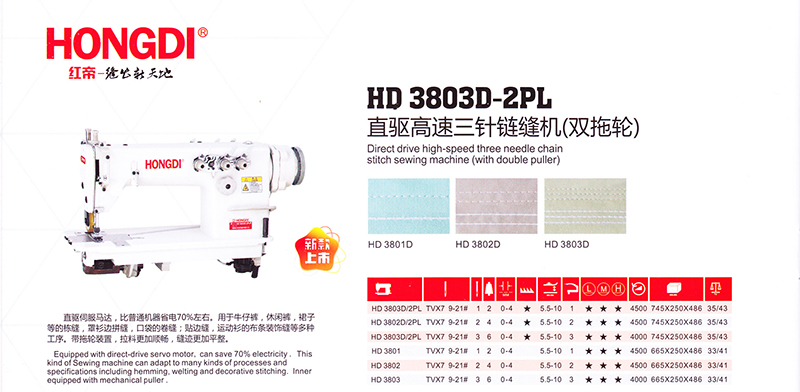 HD-3803D-2PL直驅高速三針鏈縫機(雙拖輪)