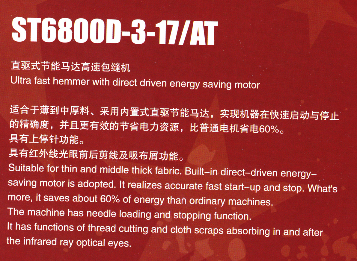ST6800D-3-17-AT直驅(qū)式節(jié)能馬達(dá)高速包縫機(jī)