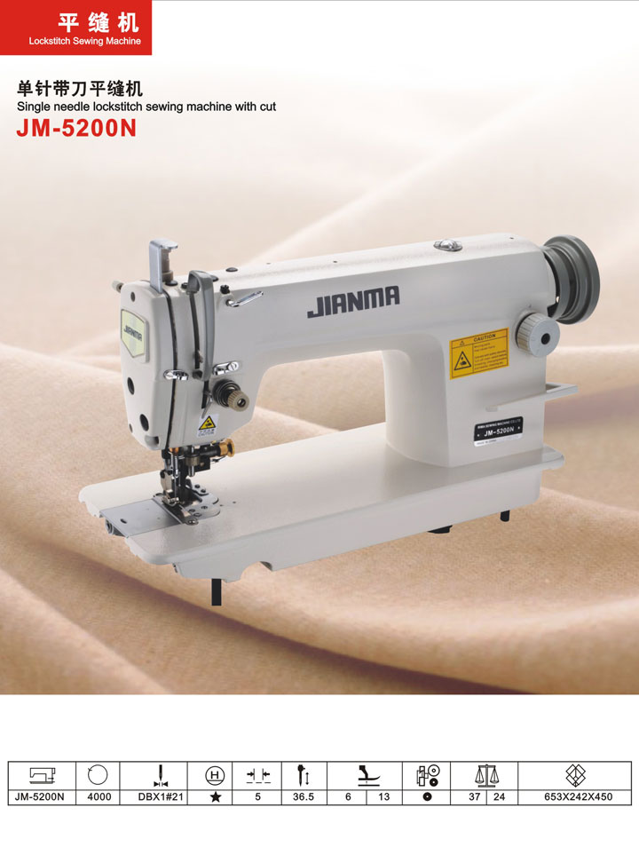 切刀的上下運轉是拉桿方式的。專用的切布罩可將切下的布屑處理掉,提高了操作性。 根據工序的縫制條件,切布切刀的位置可在機針的前方2mm,后方3mm左右的范圍內進行調整。