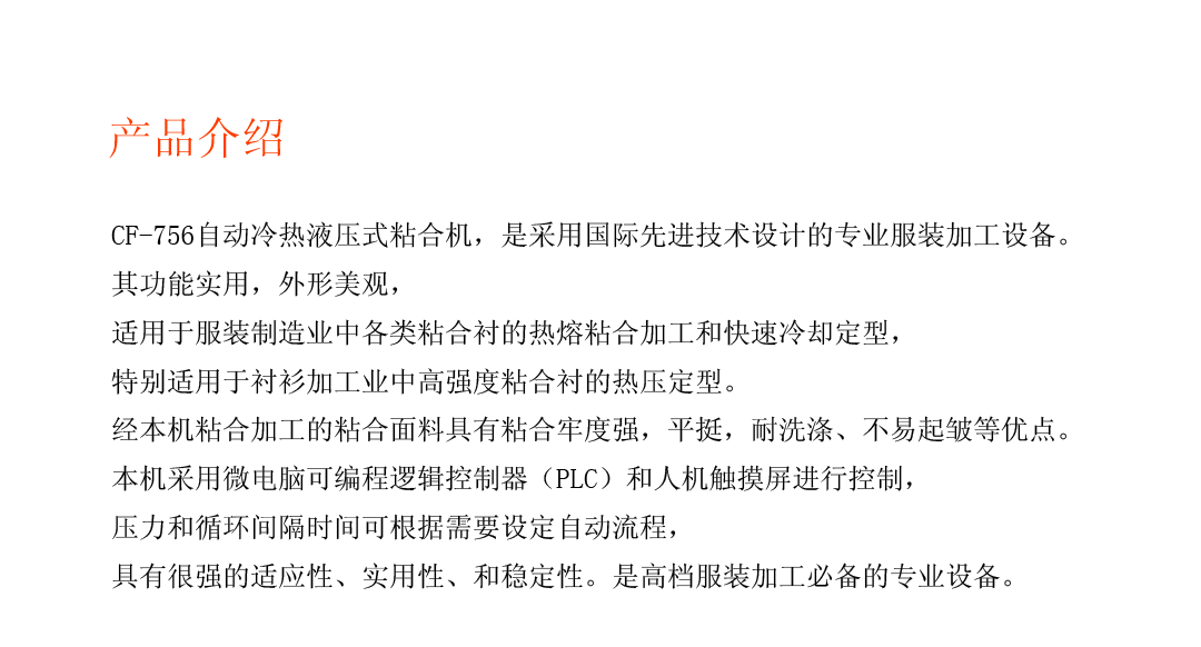 熱門產品: CF-128A 高速自動拼接橡筋機   CF-126B 全自動橡筋切帶機   CF-120H 全自動切斷機(熱刀)   CF—8133 全自動(襯衣)恤衫筒粘合壓平機   CF-600FP 氣壓式雙壓棍熱熔粘合機