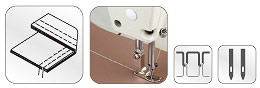 本機采用雙直針、立式自動加油,旋梭勾線,滑桿挑線,構成兩行雙線鎖式線跡;針桿采用機械式分離與聯合,上下軸采用滾珠軸承,同步齒形帶傳動,柱塞式油泵潤滑系統,采用針桿擺動與送布牙同步送料方式,旋鈕式標盤調節針距和杠桿式倒順送料機構,在梭芯內的縫線回拉彈簧,保證底線與面線得到一致的縫紉效果,適用縫制大衣、制服、牛仔褲、包袋、裝飾縫等。