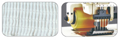 BML-1400系列為平臺式多針機(jī),上松緊、門襟滾條、上腰、裝飾縫等。適用于內(nèi)衣、運(yùn)動服、女裝、工作服、室內(nèi)裝飾品等。 型號: MR:打纜裝置 WB:上腰裝置 PSF:門襟裝置 PSM:裝飾裝置 PSSM:打纜和裝飾裝置 PL:滾條裝置 ET:下線為松緊線專用 附加裝置:MDH:前松緊帶送布調(diào)整裝置