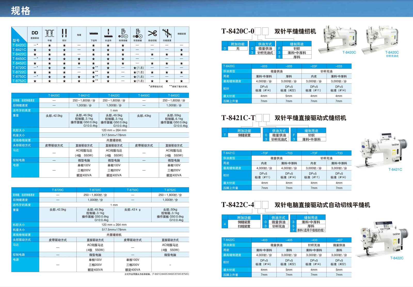 兄弟T-8XXXC雙針平縫縫紉機系列