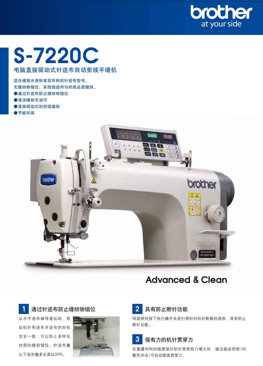 S-7220C電腦直接驅動式針送布自動剪線平縫機