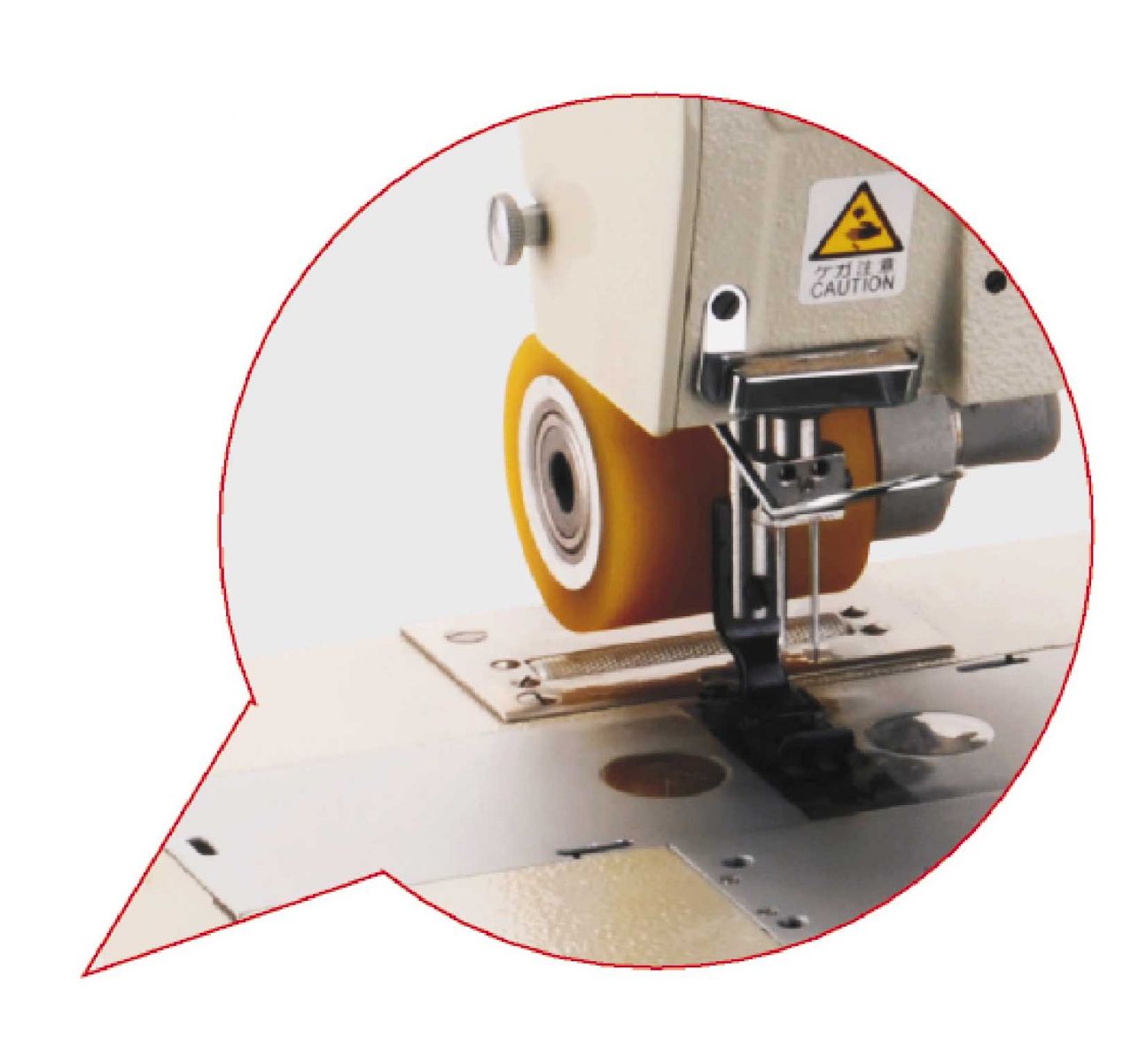 高強度的進口同步齒形帶,傳遞力矩大,過厚能力強,在過厚7mm時不跳針、不斷線。