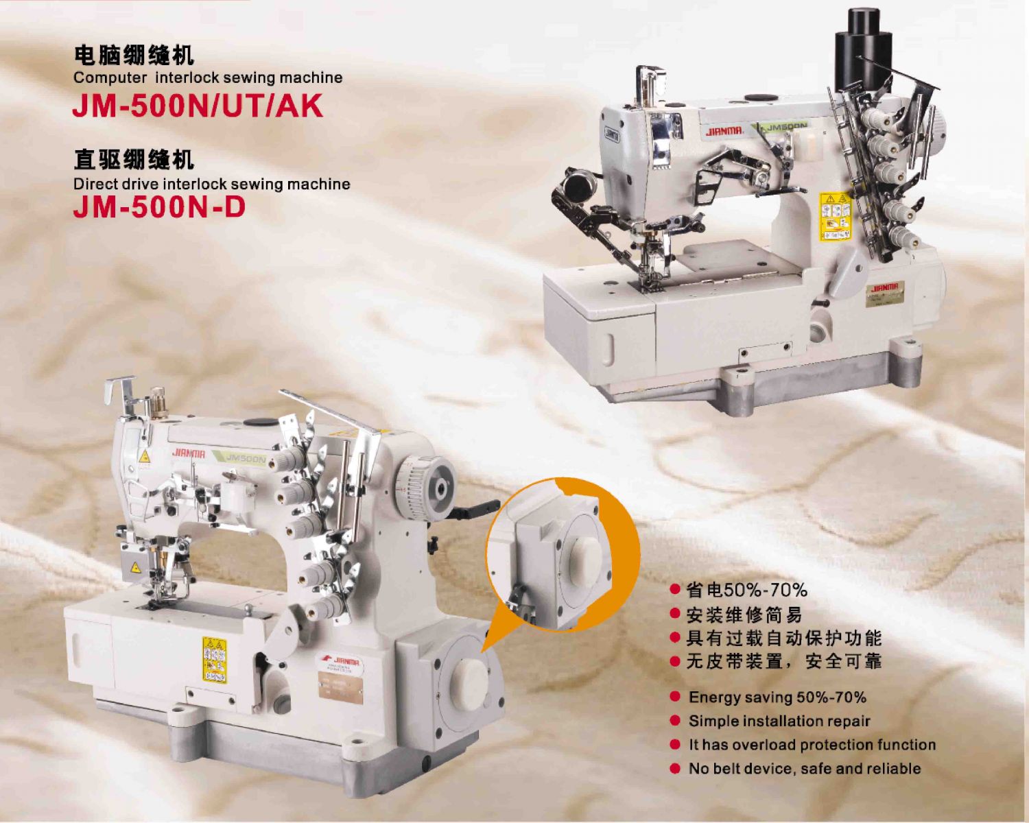Adopting movable needle protector, the needle can be protected without damage and abrasion. And prevent needle steps and loses.Ensure stable and beautiful sewing trace.
