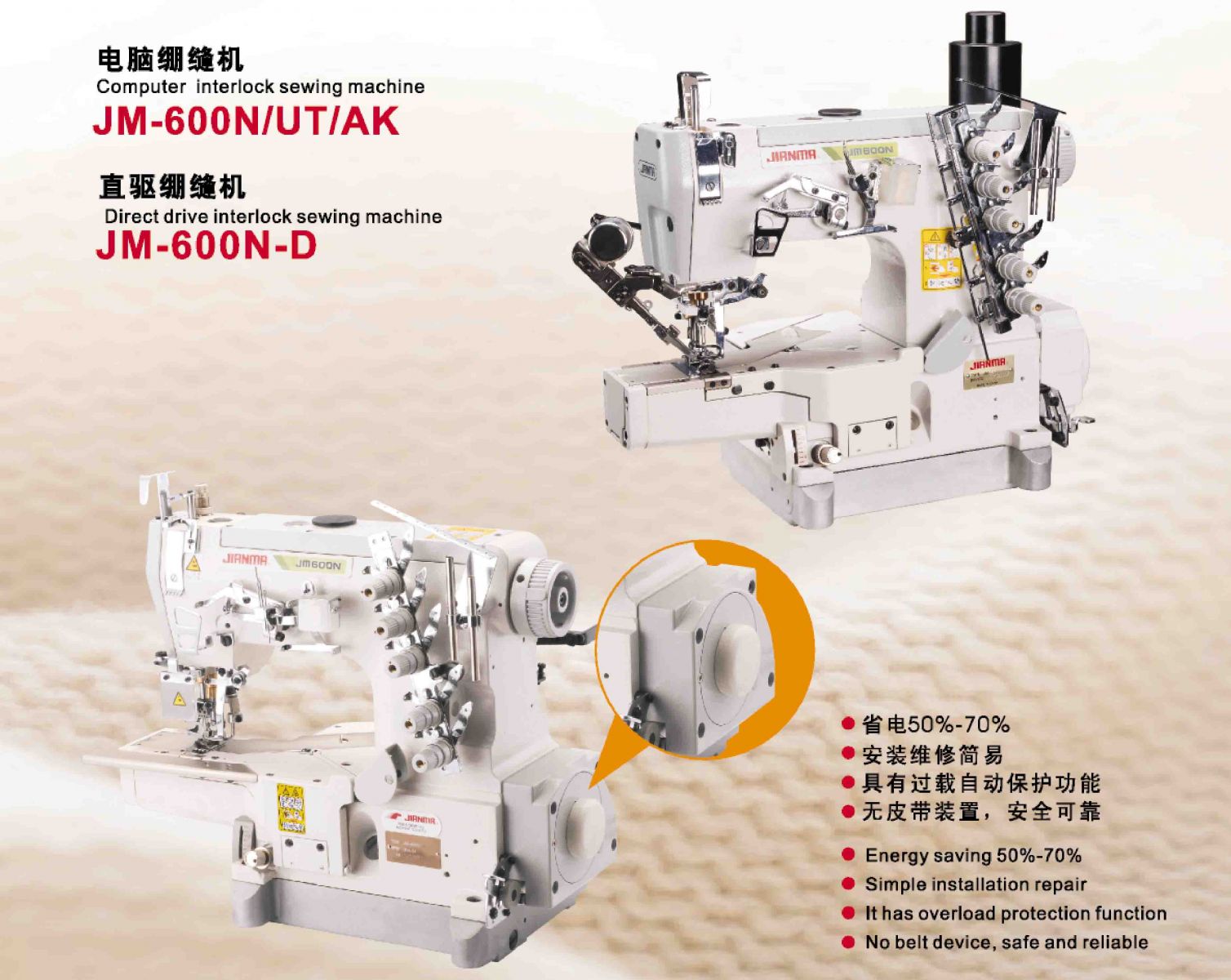 JM600N系列的基本凱種.可以進(jìn)行兩面裝飾縫的基本縫紉杭.因是小方頭式車(chē)床,領(lǐng)口及袖口等的較小部分, 也可以輕松地進(jìn)行縫制。