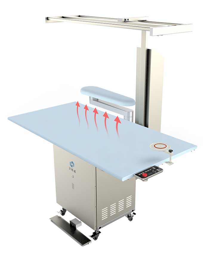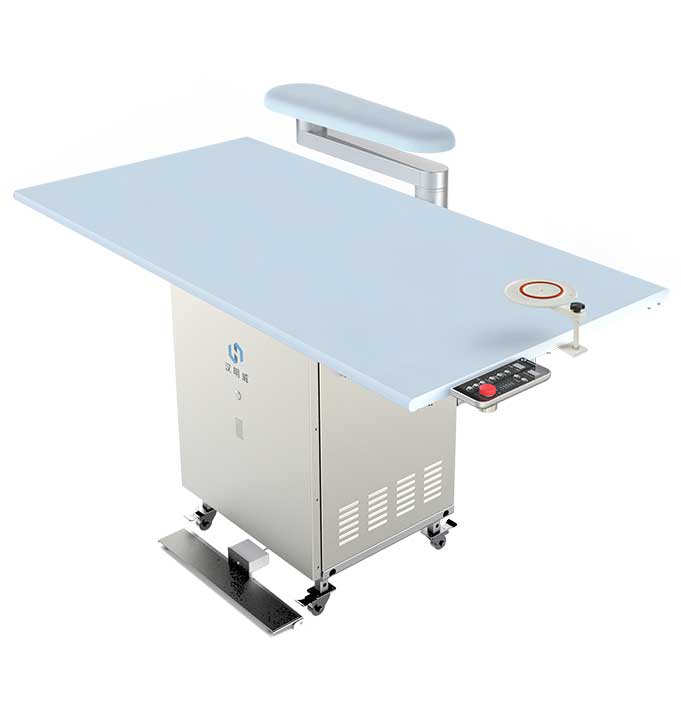 深圳漢明威服裝智能燙臺(tái)包含了燙臂,烘干和多功能燈架等部分。按照結(jié)構(gòu)來(lái)分,燙臺(tái)有好幾個(gè)類別,可以分為無(wú)臂,單臂,雙臂燙臺(tái);而按照功能來(lái)可以分為點(diǎn)動(dòng)和腳踏式燙臺(tái)。燙臺(tái)的主要用途主要是用于服裝制造,是蒸汽熨燙作業(yè)必不可少的專業(yè)設(shè)備之一。