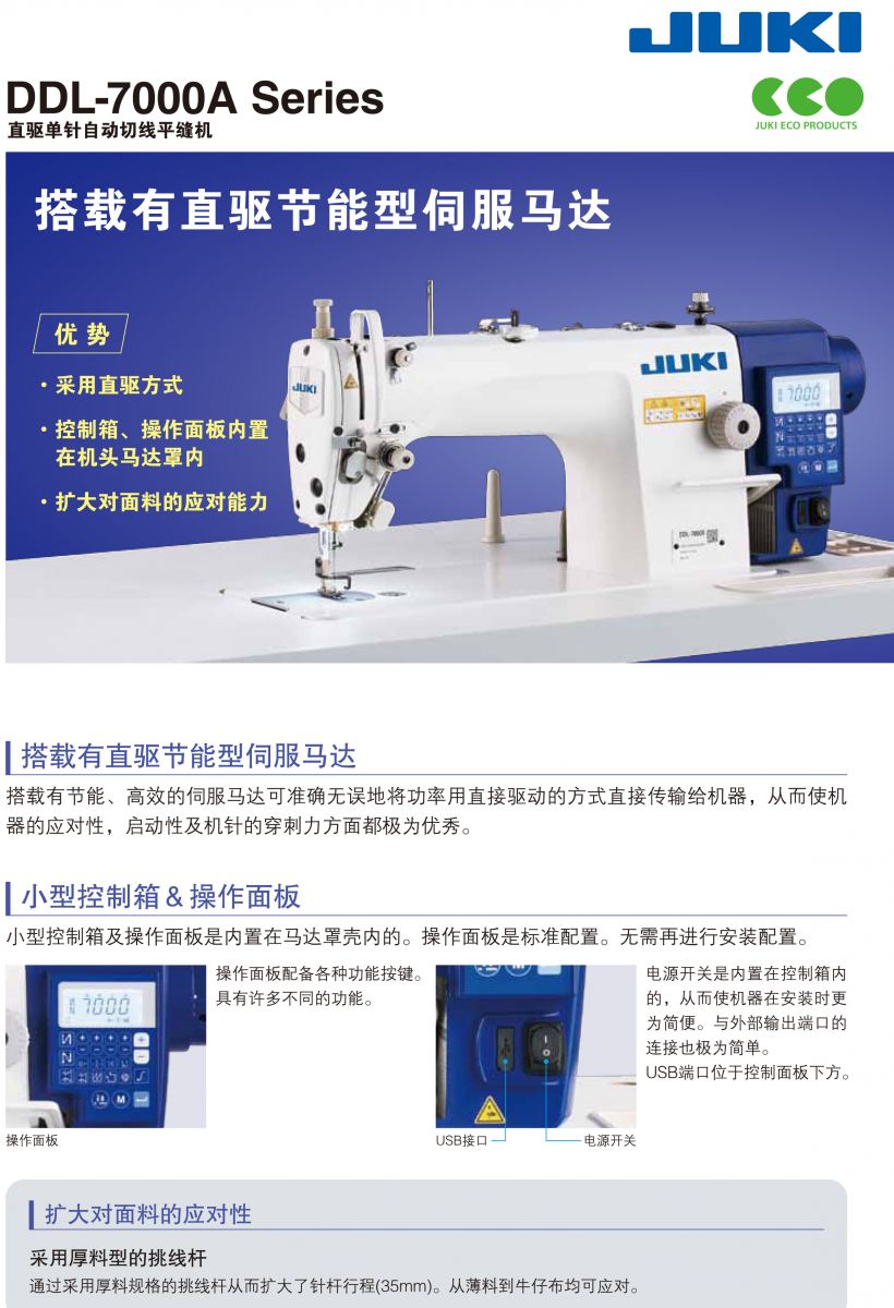 熱門產品: JUKI DDL-7000A直驅單針自動切線平縫機   JUKI DDL-8000A直驅單針自動切線平縫機   JUKI DDL-9000C高速直驅平縫自動切線系統   JUKI LBH-1790ANB高速電子平頭鎖眼機(短線頭規格)   JUKI MO-6700DA高速無供油機頭包縫機/安全包縫機